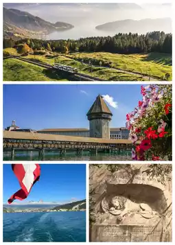 Lucerne (Sleeping Lion Statue + Water Tower Flower Bridge + Musegg City Wall