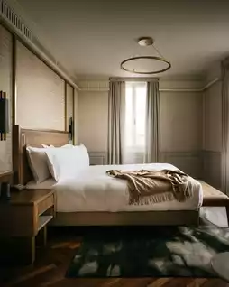 Mandarin Oriental Savoy, Zurich - TRISTAN AUER: Tristan Auer (renowned French designer) incorporates Zurich's harmonious and rustic natural environment. The interplay of gray lines creates graphic patterns and evokes emotional connections, echoing the ancient architectural details: travertine, grand staircases, and time-honored woodwork... all redesigned and integrated with new decor. The subtle transparency between the lobby and the outdoor cityscape allows the spaces to interact and coexist harmoniously, creating a seamless and vibrant atmosphere.