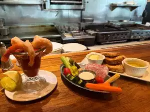 We got off a cruise and stayed in Seattle one extra day. We were staying at an Airport hotel and walked by this place. I looked at reviews and decided to try. We sat at the bar and got to see all the action. I observed some good things and some bad things. A waiter returned eggs Benedict and said they were supposed to be soft. So I watched the staff pull off the eggs and set plate aside and make more eggs soft. I imagine by now the hash browns were cold and the muffin soggy. Should have started over. I saw a waiter stick his finger in a prime rib plate to test the temperature of the food as it had been sitting under a heat lamp. There were a few other things too. I love French onion soup so I ordered a bowl and it was just ok. The temp of the soup should have been warmer. It was not. The cheese was melted though. It was an expensive $11 bowl of mediocre soup. We also had the Turkey sandwhich and it was huge and good. It is shareable. Don’t order two. They give you veggies while you wait for your food and they were good. Overall it was expensive for what we got and what we witnessed. The bar chairs are very comfy though and the guy beside us said the clams were excellent. Maybe we just didn’t order the right items. Not sure I would repeat this place though if I make it back to Seattle.