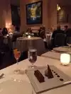 I have been to my fair share of high end restaurants in NYC but I had never heard of this place. The place itself is beautiful, but very small. Upon arrival, they took out coats, walked us past a small bar area and into the main dining room. There's about 10-12 tables in the dining room, very intimate settings. Cream colored walls, comfortable plush seats, and beautiful paintings align the walls. They sat us down and brought over a cocktail menu and wine menu. I started off with a cocktail, then we moved onto the most spectacular French wine I have ever had. You can order a la carte, or from the chefs tasting ($135) or the seasonal tasting menu ($155). We went with the seasonal tasting menu (7 courses). Words don't do much justice, but we were given some cheese puffs to start accompanied by butternut squash soup and a mousse crostini, followed by a fabulous grilled calamari dish, then risotto with poached egg, potato encrusted cod, poached lobster, scallops, a cheese plate, chocolate cake with mint ice cream and some cookies and candies to complete the meal. Great food, beautiful restaurant. Overall the service could have been a bit better, and the sommelier (or the woman handling the wine) had no idea how to handle wine. She also had a limited breadth of knowledge on wine, my date knew 100 more than she did. A little disheartening to me. I have no idea how but we seemed to intimidate the staff. Strange. I'll still give them a perfect rating but I do feel they need to work on service, I've had much better service at high end restaurants in NYC.