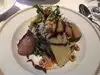 My entree of Grits and Egg, was simply stunning. Layered and absolutely delicious. My wife had frois gras which she also enjoyed. Main meal. Mine was steak which was barely warm when served. The cut was very good but the steak was all but cold. The accompanying salsa type sauce didn't compliment the dish at all and seemed to be a total mismatch. The vegetables, carrots, peas and potatoes were nothing special and could have been served at a diner. My wife enjoyed her Cod, but this,too was barely warm. The setting is lovely, the staff generally very attentive, although we were not asked what we thought of our main meal. Maybe they already knew the answer.