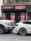we were just two french tourists who wanted to try the famous big slices of pizza. the staff working at this moment was actually yelling all the time which made him hard to understand. at the entrance, it’s written 1,5$ a slice. we asked for two and a can, which made the total 8,5$. he said only after we paid that the shown price at the entrance was only for cheese pizza (indeed displayed further in the shop, but not showing the slices’ price oops). he asked us to pay not even showing us the final amount. when we got the price, we asked for a refund. he acted as if he didn’t get what we asked for. he’s just dishonest. worst experience. may be a cool place to eat for locals, but the guy who served us doesn’t deserve clients.