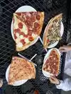 They had a line outside because the pizza was so good and reasonably priced. The slices are incredibly large. For example two slices are more than enough-almost like eating a whole pizza. I was shocked at the prize and had the guy recheck what we bought.