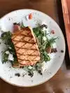 Located on the 4th floor of the Omni Hotel building just off the elevator. Very nice decor open and spacious. Hostess and staff very nice and service oriented. Met a friend for lunch and was seated by the large windows overlooking Michigan Ave which was nice. We started with deviled eggs which were a notch up with salmon on the tops. Creamy fresh and good flavor. You don’t see these on menus these days so it was a nice surprise. Another neat invention was the salmon BLT sandwich. I had the salmon topped garden salad which didn’t disappoint. Portion of salmon was very generous and cooked perfectly! Only thing I would say is it needed a little more dressing combined in the greens along with better portion of goat cheese. All in all it’s a very nice and surprising change up from the typical regular lunch selections and easily accessible downtown. Great for special occasions, groups or even a quick premium lunch.