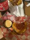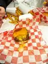 There are mainly cheeseburgers and fries. Order a regular cheeseburger, a double cheeseburger and fries, paid 22$, that's currently just under 19ā¬. The fries are good, the burgers are like the little cheeseburgers at MC Donalds, just dripping and muddy, and overpriced. Conclusion: Okay for fries, go somewhere else for burgers.