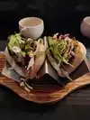 Had pork sizzling noodles, fried chicken skins, pork belly bao , green beans with pork, and butter mushrooms . Sauce with noodles was nice, liked the mushrooms for the most healthy. Bao served open face, was good but didn't pop. Sauce for chicken skins seemed something missing. I like tamarind and fish sauce, but something missing made taste off. All dishes seemed a bit heavy handed with oil. Presentation was nicely done. Service pretty quick for lunchtime at 1230. Noted that some veggies missed complete prep.. roots... Not sure green beans were fresh cooked. Texture like pre cooked or blanched.