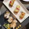 Tapas style entrees, food looks beautiful and tastes yummy too. We tried five or six starters and one shared plate and all of it was very good. Delectable is the word!! We opted for vegetarian that day and they had so many options - lotus stem with bhel, rice paddus, sweet potato chat, mushroom rolls, paneer with a difference and sabudana tikki. The presentation and the taste, both are an experience. Must visit place and do try there cocktail ‘re-engagement’. It comes with dry ice and water below the drink to create smoky effect :) A little expensive though, but ok for once in a while.