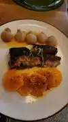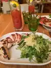 excellent everything, from absolutely top quality and plentiful food, to service to cleanliness. We had some appetizers like bread stuffed with cheese and eggplant, and also desserts, a cheesecake with a red fruit topping, delicious.