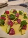 The servers were super accommodating and made us feel welcome right away. The space is beautifully decorated, stylish without being overdone, and the wine list and cocktail menu are both excellent. The drinks are genuinely worth the visit. The food, however, didn’t quite match the rest. The tuna Niçoise salad looked great, and the greens were fresh and well-balanced. But the tuna tasted like canned shredded tuna. Maybe it was packed in olive oil, but it still wasn’t what you’d expect. We were hoping for lightly seared fillets like most places serve, and this just missed the mark. The burger had decent flavor, but it wasn’t the smash burger they advertised. Just okay. Bottom line: come for the drinks and the atmosphere. If they elevate the food to match the bar program, this place could be a real standout. For now, it’s more of a cocktail destination than a dinner spot.
