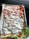Most delicious chicken dish I’ve ever tasted. Chicken over rice, mixed yellow and spicy rice with lashings of white sauce. AMAZING! Absolutely worth the 45mins wait 👏🏻🙌🏻