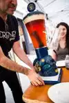 We had a group of 9 for dinner and we squeezed into a picnic table outside on Stone Street. Love the atmosphere of this little, cobble-stone street that has been closed off to traffic and turned into one big outdoor restaurant area. Very fun spot to eat. Our waiter came over, told us we needed 3 pizzas and one had to be pepperoni -- he'd let us pick the other two. :D We laughed and were glad that someone had cut through the usual choas of ordering for a group. And he was EXACTLY right on the amount we needed and that the pepperoni was a MUST. It was fantastic, as were the other pizzas. We ordered the giant beer pitcher thing which came as basically a chilled dispenser with a tap (and sugar skull) at the bottom. Unique and fun. All in all, we loved this place and would go back in a heartbeat for the energetic, outdoor vibe and amazing pizza.