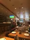 Busy place with a good atmosphere. Couple of TVs with sports channels. Wide range of pizzas available. The traditional round pizzas have a thin base whilst the larger rectangular pizzas have a base that is between a thin and a thick base so if the base is important to you beware. Three of us ordered one rectangular and one round pizza plus a green salad. Even though my grown son is a pizza eating specialist it was too much for us! Good range of beers,wines and spirits. We ate inside but there is also a outside terrace.