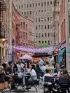 My fave pizza place in New York! Their pizza is brick oven baked and is delicious! The atmosphere outdoors is so fun, it's a pedestrian only street with lights, music and large tables that accommodate even bigger groups! I highly recommend it for locals and tourists who want the nyc experience!