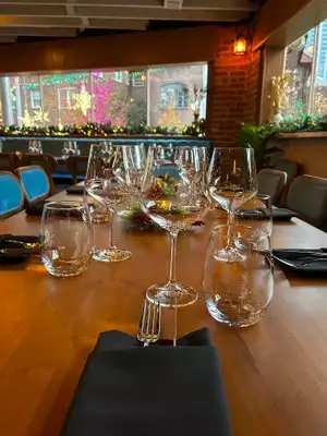 Great flavorful food, varied menu selections, excellent considerate attentive servers, snobby waitresses, tasteful minimalist decor, comfortable seating in & out. Restaurant has pp to bar area's comfortable seating. Servers rushed outbefore we took a step. Kudos to the gentleman. None of the group used the lav. Parking available across the st. Convient location. A gem. Looking forward to our return. Gave 5 stars dispute waitresses.