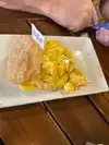We arrived at 10:00 on a Sunday morning and had to wait about 30 minutes for a table for four. Not a complaint, as this is a new venue and has been quite popular. The hostess was very pleasant and we were seated in the inside dining area, a concrete floored area with Ikea-esque furnishings, no noticeable sound treatments and hence very noisy. Our waitress was polite but sometimes difficult to hear above the din, and think this contributed to issues with our order (more on that later). We started with drinks: I ordered a pint of ale and one of our party ordered the mimosa “flight”. Our waitress explained that she couldn’t serve alcohol unless there was food on the table first and recommended a single serving of bread pudding, which we thought was odd, but plausible. It was about 5 minutes after the bread pudding arrived that our drinks did. The bread pudding seemed more like coffee cake and the caramel sauce was too thick. We placed our orders and about 15 minutes later, the food arrived for three of us, but not for me. Two of the orders were missing items. At this point, our waitress was nowhere to be found and we did not see her again for the remainder of our time there. Two of the three delivered orders were missing sides and we pointed that out. Before the missing sides we’re delivered, a separate plate arrived via a new waitress that contained three different orders of eggs, one of which was probably mine, but I wasn’t sure as my order had not yet arrived. The other two egg orders were not ours, but they were now residents of our table. It was apparent that the sides were going to be served family style, which we found to be unacceptable. I pointed out to the new waitress that my order had not yet arrived. The Chef came from the kitchen and asked me what I had ordered. I told him, he turned around and motioned to one the wait staff behind him, and viola, my food arrived along with my friend’s missing side orders, one of which was wrong. My egg, ordered “over medium” was delivered with somewhat runny whites. At this point, we just shut up and ate food, which was served primarily on metal camp plates. I had the savory biscuit flight. The biscuits were excellent, the various gravies were not hot, but still quite tasty. By the time I got to the last biscuit, it was starting to get a bit soggy, but I’m a slow eater. I’ve always said that if you want to really know what’s in the heart of a restaurantier, pay attention to the bathrooms. The men’s room was dirty, but not to the point of smelling foul. Interestingly, the color treatment on the concrete floor of the dining room stopped abruptly at the door the lavatory, which more resembled one at a gas station. By sharp contrast, a place like Mi Tierra which probably feeds more than a thousand people a day manages to keep the bathrooms pretty clean. In summary, I can forgive the waitstaff in a new establishment to get the hang of what’s going on, but there’s no excuse for a mismanaged kitchen. Not sure what happened, but it was not run well. The final tab for four was $55, including two drinks, so that’s pretty decent, but until we see continuously great ratings and reviews, none of our group will be returning. It’s a great concept, and I hope that the kinks get straightened out.