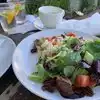 Friday afternoon outdoor patio was lovely. Full bar, smoothies, tea/coffee, and salads are a great addition to any lunch meal.