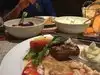 We ordered a different steak each. Only the mignon tasted acceptable. And the salad. The rest of steaks were tough, tasteless. We were actually very surprised about the poor quality of food especially the steaks. The Prime Rib was served rare when it was ordered for medium rare. Wow instead of providing a new one, they transported it back to kitchen to re-cook. And back to table. That’s unsanitary! The one star is for our pregnant waitress who was the only one who was apologetic and was genuinely friendly.
