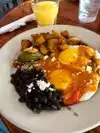 First, I will state that most of the food was pretty darn good. I had the breakfast tacos with avocado, pepperjack cheese, and added chorizo and they were delicious. The black beans which came with the meal were very undercooked, however, and were so hard that they were inedible. We went for brunch on a Sunday morning and had to wait 15 minutes for a table. No problem. It was pretty hot waiting outside so I thought getting our table and sitting down would be a welcome experience. We were seated near the thermostat, which read 86 degrees INSIDE. It was miserable. We were sweating while eating, which is just gross. At one point, an employee walked up to the thermostat and attempted to adjust it and just threw his hands in the air and walked away. The servers were ridiculously slow in refilling our waters, took 25 minutes to bring a mimosa because she "forgot", and then were rude to me when I asked where we needed to pay. They brought the check, left it in the middle of the table and never came back. When I asked where we pay, she said that she kept coming back to check, but I never set it out like I was ready. How about you come to the table, where we all have empty waters in your 86 degree restaurant and ask if we need anything? Maybe then you would see that our credit cards were sitting there and we were waiting to pay the entire time.