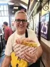 I am not sure how a video of someone from All’Antico Vinaio showed up on my feed but I am so thankful it did. The little place is the New York outpost from Italy. Even the couple behind me that are Italian mentioned that he went to two other locations in Italy and a sign I was at the right place. Line up are common and we waited about 30 minutes and worth the wait. Maybe 11-12 seat only inside but so many other places in the city to eat it anyway. You order at the counter when you see them making the yummy sandwiches. 5 persons were behind the counter and happily working! Even suggested not too make substitutions as they can like he said but would not taste as good. They definitely know what is best for you! A great sandwich start with the bread! So yummy and crispy and warm! You have 16 sandwiches you can choose from. I went with the famous La Favolasa (Sbriciolona, Pecorino Cream, Artichoke Cream, Spicy Eggplant) and was so yummy! My friend went for La Summer (Prosciutto Toscano, Mozzarella, Tomato, Basil) and also raved about it. We were able to get a seat and enjoy it on premises. It was a great experience and can’t wait to go back Regards Ronaldo
