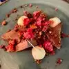 Found this spot on TripAdvisor and previous reviews were spot on. Great service with people passionate about what they do. Creatively prepared, beautifully presented, delicious dishes. No regrets in our orders of wine, burrata with burned eggplant, cauliflower with feta cream and harissa, ravioli and pappardelle with lobster. Pineapple dessert should not be missed. I’d be a regular if I lived here!