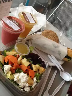 Grabbed Lunch here with a friend and our kids. Long line moved fast. Nice healthy tasty menu. The kids loved the cupckes. Sandwiches and salads that really were better than I thought could be done in such a setting. Will definitely go back.