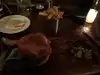 The bar area and restaurant had a good atmosphere, the food was great but the menu did need explaining. It was very dark in there.