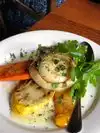 Stopped by in for lunch before I get to the food it’s a great place for people watching if you can get a window table. See had the creek salad which was a good start to your lunch then moved on to starters of mussels in a great sauce, octopus that wax tender and well cooked and the Truffle fries and where very good. Couple of glasses of wine to complement the meal. Very attentive staff.