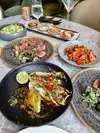 Very good service with an Asian fusion menu. All dished were delicious. Had the whole fish and the presentation was great. The Lumpia and Cauliflower appetizers were amazing. Our favorite was the Som Tam Salad was our favorite. Full bar.