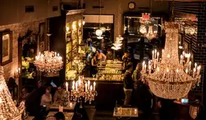 Lovely evening at the Antique Garage, Tribeca. Cosy atmosphere with Victorian decorations. Antique pieces, chandeliers, live jazz and cool people..prices were not too expensive for NY standards and they have a decent wine selection. Turkish reds are great choices. Don't expect much just enjoy yourself, ambiance will take over. You wont be disappointed.