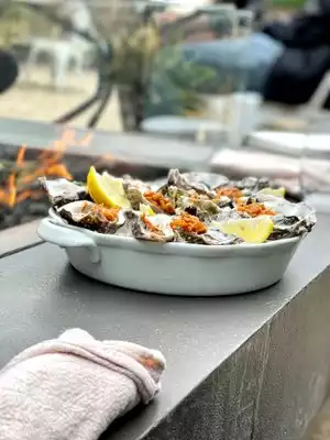 Newlyweds from Texas visiting with friends in the Bay Area for an early dinner. Everything about this place was awesome!! Our waiter had the greatest sense of humor and didn’t rush us out of the restaurant because they were closing for the night. The food was AMAZING!!!! The lamb chowder is a must have. The outside sitting area is really nice with great sitting as well as a fire pit to stay warm. It felt a little strange being from hot and humid North Texas to be sitting in front of a fire pit with a hoodie on yet a welcomed change from our norm.