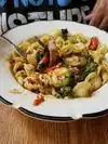 ate outside on a great day. food was very good. brochette was a hit. Pastas were all good. service was spotty, but it was a good day to linger