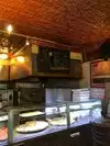Small place. Tables available. We got carry out which is at back of restaurant. Give your order, get your pizza, and pay. Water bottles available to buy. They offer meatball pizza, artichoke pizza, pepperoni, margarita, and others. I had the artichoke pizza. The slice was huge and very good. No outdoor seating.