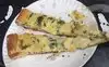 We were here on a guided food tour and got a delicious sample of this pizza. The base is a thicker crust and on top of it is a sauce like substance that resembled spinach and artichoke dip. This topping is extremely rich and filling. I would definitely recommend either sharing a slice or having only a sample. This was an extraordinary slice of pizza. I would love to return.