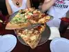 Buy by the slice, wedge (3-slices) or Pizza Enormous pizzas, wide choice of toppings and some different choices. We had Margarita, Artichoke, Crab and Meatball, all delicious and very filling. Very memorable.