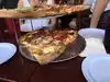 The portions are very large, good value for money, the food is delicious and the atmosphere of the place is great, 100% recommended to go. Two people can perfectly eat the promotion of three slices of pizza or a calzone.