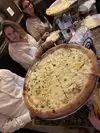 We went there on a weeknight and the place was full but we got lucky and had the last table for ourselves. The staff was really really good and gave us excellent service, patiently answering all our questions. We were in a group of 6 and had 2 large pizzas (way too much!!): one artichoke and one called white. Both were incredible and huge! The overall dinner was a very good experience, good food, service and atmosphere! Would definitely come back.