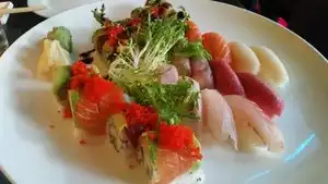 My friend recommended this place and I was glad to be introduced to it. Delicious Cloud 9 special roll. My friend ordered a bento box and took home some. A big box. Very nice waitstaff. I highly recommend this sushi restaurant. Also, the interior is sizable and well laid out with a bar on one side, a sushi bar on the other, and tables set spaciously in between.