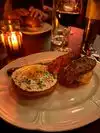 A friend recommended this as an alternative to 4 Charles Prime which you can never get a reservation for. We also shared the Thick Cut bacon as an app. I’mma be disappointed this weekend with my at home sad….thin….crispy bacon. Tisk tisk Trust me and just order it as soon as you sit down...even before drinks. It's that good. We got the Wings minus cilantro (ewww) and they were great, fried crispy and the sauce was just the right amount. The crew also ordered beef tartare and they definitely need to double the amount of bread provided for that...unless you're supposed to heap it on? Had to try the burger..I mean...come on it's Dry Aged and $30...you gotta. After the taste test, it was a tough call between the Dry Aged Tavern Cheeseburger & the Shaved Prime Rib Sandwich. I'd almost say the Shaved Prime Rib Sandwich took a partial lead just cause of the au jus on the side...but burger was delicious. Ordered the baked potato, thinking it was just one...so was shocked that two came out...maybe they heard incorrectly when taking the order? As you'll see below no photos were taken of the sandwiches..we dove right in... Hands down though the best part was the Chocolate Cream Pie….OMG…I need to find that recipe ASAP! We also tried the Key Lime pie which was delicious too however not as good as the Chocolate Cream Pie. And just saw they have a brunch menu? Will be looking to make a reservation for that.