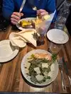 Our meal was really good, shared a burger, fries and Mac and cheese which was enough for two of us. The burger was simple but delicious. Nice vibe however we didn’t book so we had to take the next table available which was at the side of the restaurant which was disappointing as away from the atmosphere. If you are going I recommend you book!