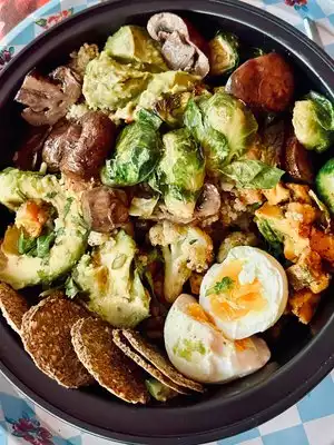 Avocaderia is a hidden gem inside an old industrial building. Bowls were delicious, portions big and ingredients fresh. There are a few tables outside the restaurant, in the lobby of the building. Not the coziest placement, but good for people watching. Open only on weekdays until 4PM.