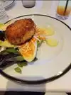 Three of us came for lunch. Everything was great except for our initial contact with one of the waiters. We had reservations and a table for two was reserved with a third chair on the side. The extra chair was styled differently than the other two comfortable padded chairs and was also unstable. My friend, who has back problems, requested a chair like the other two and the waiter refused. Finally, he brought another chair exactly like the one that was uncomfortable. My friend again asked for a chair like the ours and he replied that he would have to get permission from the manager. While he was gone looking for the manager, she went to a table with only one person and asked if she could take the extra chair. When the waiter came back without getting permission, he saw that we had obtained a padded chair on our own. He was furious. Fortunately, a different waiter was sent to wait on us, who was very welcoming and professional. I had the crab cake, which was the best one I have ever had and a glass of wine. Total bill was $69 before the tip. There were two women at the table next to us who were very friendly. So, we not only had a lovely meal, but chatted with some charming locals.