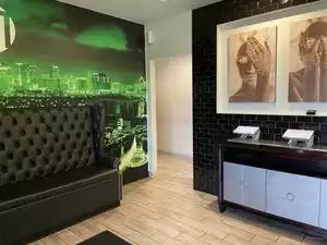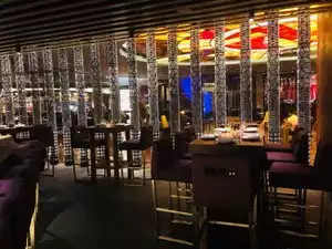 Gross restaurant. Chair full of crumbs, sticky walls( ew how!), dirty silver ware and glasses. The food was so basic and lame and someone (an employee because we only smelled it when they walked by) smelled really bad, like a mixture of cigarette smoke, body odor and alcohol. The volume was so loud and the service was just ok. We expected more and for the prices we paid to eat in the dark, I would say it isn’t worth it. Not only were we concerned about the cleanliness of the tables, the bathroom had a faint odor of raw sewage and the toilet didn’t want to flush. Also, expect to get panhandled in the parking lot as this restaurant is located in a poorly lit and unsavory strip mall littered with broken beer bottles and cigarette butts. What a colossal disappointment