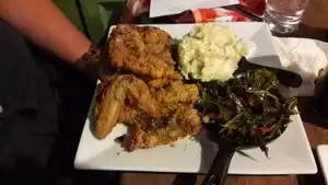 Delicious dinner. Started with the fried chicken sliders which were fresh hot and delicious. I had the Blvd combo which had catfish, greens and potato salad. While the whole meal was wonderful I could have eaten a large bowl of greens and been very happy! My sister had the equally flavorful turkey meatloaf with garlic mash and broccoli. The staff was super friendly and attentive.