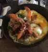 What a find! Shrimp over cheese grits and homemade biscuit. Family owned, lovely service. Has patio for great people watching