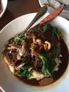 So we thought we were going to burma superstar, but this is a different place right down the street. Really good lunch, Burmese soup to start, and I had kau soi noodles, which I highly recommend. Full of complex flavors. Partner had lamb curry, which was good but not outstanding. When we walked down the street, there were about 20 people waiting outside of burma superstar. We walked right into B Star with no waiting. Desserts looked interesting, next time we'll try one.