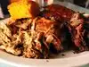 Late lunch and had the razorback platter - baby-backs and pulled pork along with corn bread and mac n cheese. Added baked beans for a heavenly lunch. Sauces are great too.