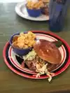 We stopped in for some BBQ today at Baby Blues. The staff are great!! We got quick an efficient service! The food is so fresh & tasty. I had 1/4 chicken white meat with sweet mashed potatoes& corn bread. My guy had the pulled pork sandwich with baked beans& corn bread. They have a selection of sauces on the table , my mix is xxx & sweet BBQ!! Great food with great service!! We love Baby Blues& will be going back very soon!