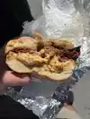 Great bagels - I kept it simple and got a plain bagel with scallion cream cheese and and Iced Tea. There are a few tables outside- but a lot of the chairs are broken so just be careful when you sit down. It was not super busy especially for a Sunday, and it seemed a little disorganized, mixing things up, bumping into each other... I would just make sure to double check l your order if you go when it is busy!