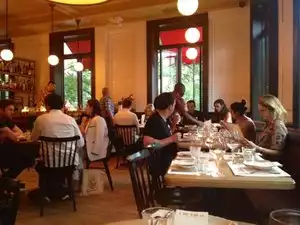 Service is really good at this place, nice waiters. Outside tables are great, inside it’s a bit packed and not too much room, but also noisy. Definitely not cheap 20 plus dollar for pasta, but a nice crowd of people and food quality is worth it a try. Fast service and kitchen which is also a plus for me.