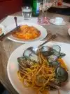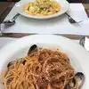 A nice place with tables even outdoors. Some noise pollution especially inside, but the food really good. Octopus starter with vegetables. First courses: delicious spaghetti with clams with a must-have shoe (excellent warm bread) and black ravioloni (in cuttlefish ink) with crab sauce. Pasta cooked perfectly. Tiramisu and super pistachio ice cream!